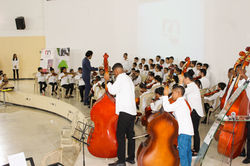 Fueron 70 estudiantes entre niños, niñas y jóvenes los que con su entusiasmo entonaron rondas infantiles, canciones que integraban ritmo corporal y una adecuada afinación, además de sus voces, a esta gran fiesta del aprendizaje se unieron los instrumentos de iniciación musical, metalófonos, panderetas, campanas afinadas, tamborcillos, tubos afinados entre otros.